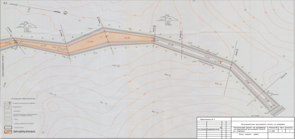 右叶洛夫卡河技术性砂金尾矿床的形成是源于2013-2016年期间在该地区 进行的采矿工程。许可证区域内没有进行地质勘探工程。2013-2016年, 在第54-69号勘探线区间内,对右叶洛夫卡河及其支流流域进行了采矿工 程。玛丽卡溪砂金(C2-22、C2-23、C2-24、C2-25区块)平衡表内储量 几乎完全耗尽。右叶洛夫卡河砂金矿床,表内储量区域 C2-11、C2-12和 C2-13、C2-14部分地区、非表内区域 C2-52被开采。在整个运营期间, 生产商品金89.6公斤。